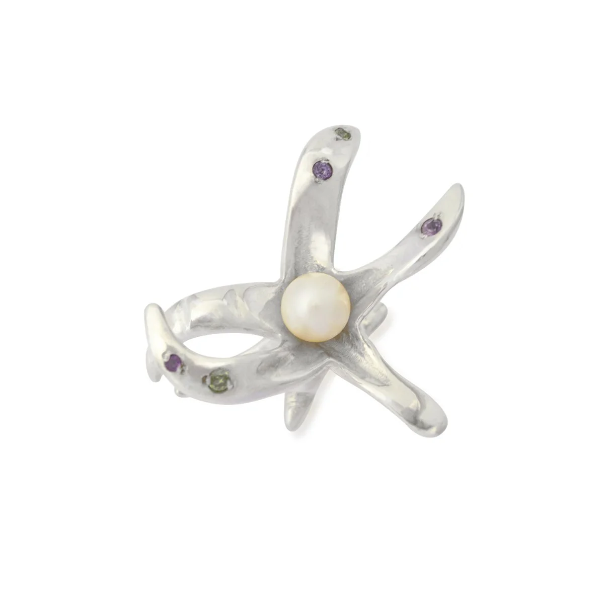 The stones can vary according to preference. The ring features a freshwater pearl.