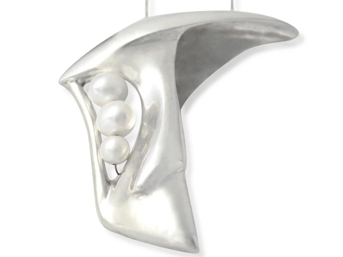 The design is sculpted by hand in wax and then cast in sterling silver. It can also be gold-plated.